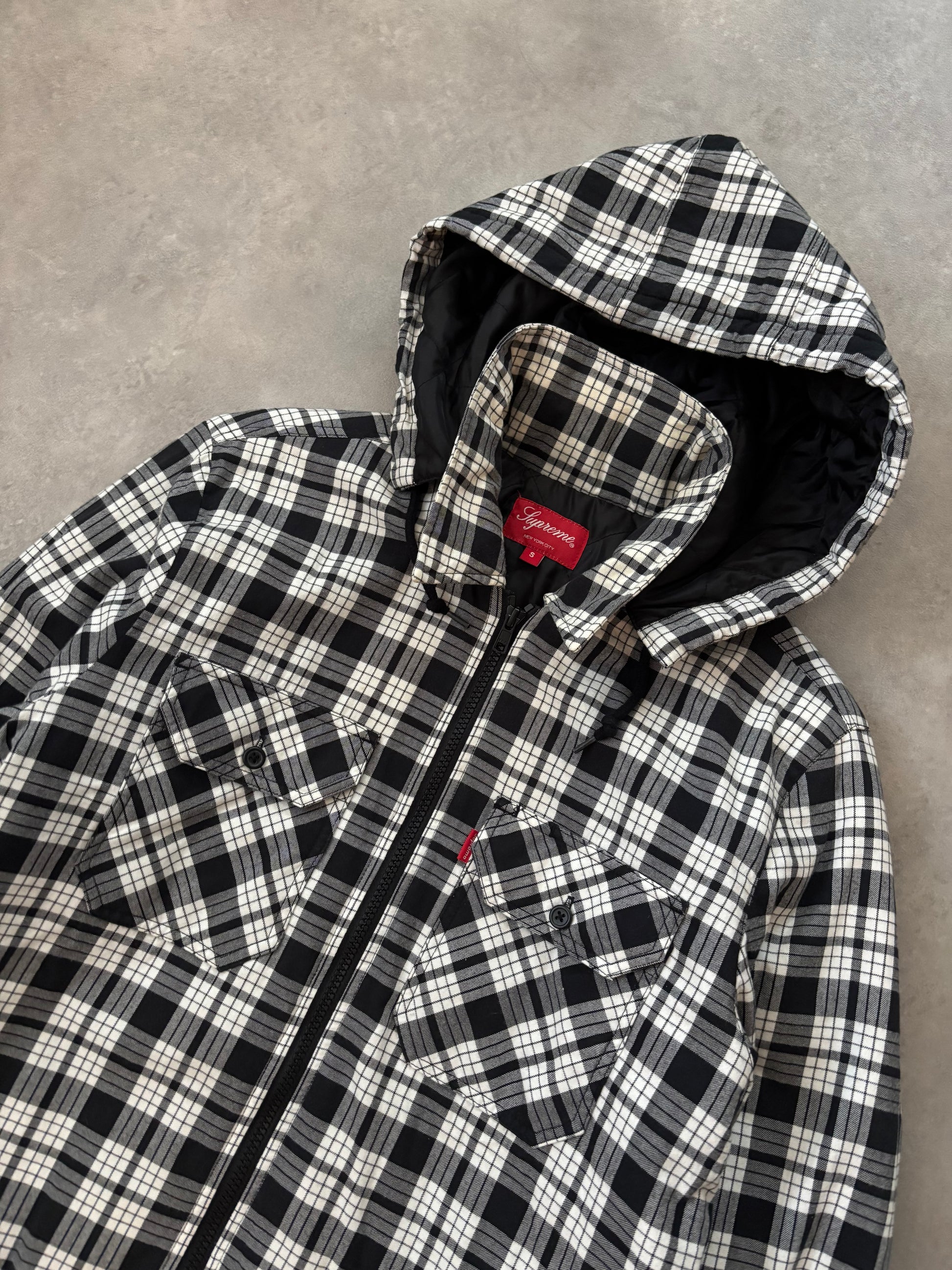 Supreme Lined Zip Up Hooded Flannel Shirt (Str. S)